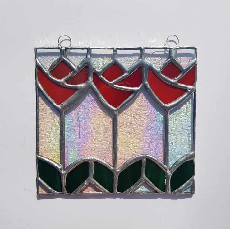 There is over 150 species of tulips. My stylised tulips are hand made using the copper foil technique. The last picture shows some of the single tulips made with a similar design and are listed separately.