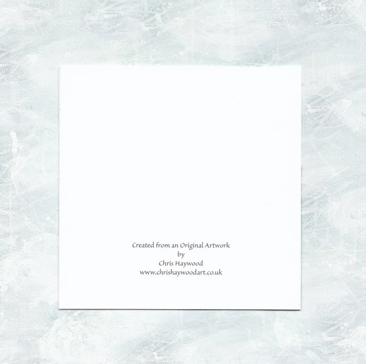 I have printed this card on 230gsm white card of fine art reproduction quality. It is approximately 5" x 5" (125mm x 125mm) and is left blank inside for your own message.