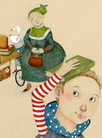 The Book Thief! This A4 8x11 inch Giclee archival print depicts my illustration of a cheeky boy 'half inching' a book from the rare books stall run by Mr Elgar.