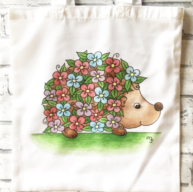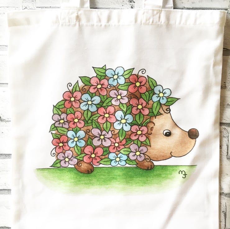 This tote bag features my original floral hedgehog artwork, professionally printed to the highest standards.