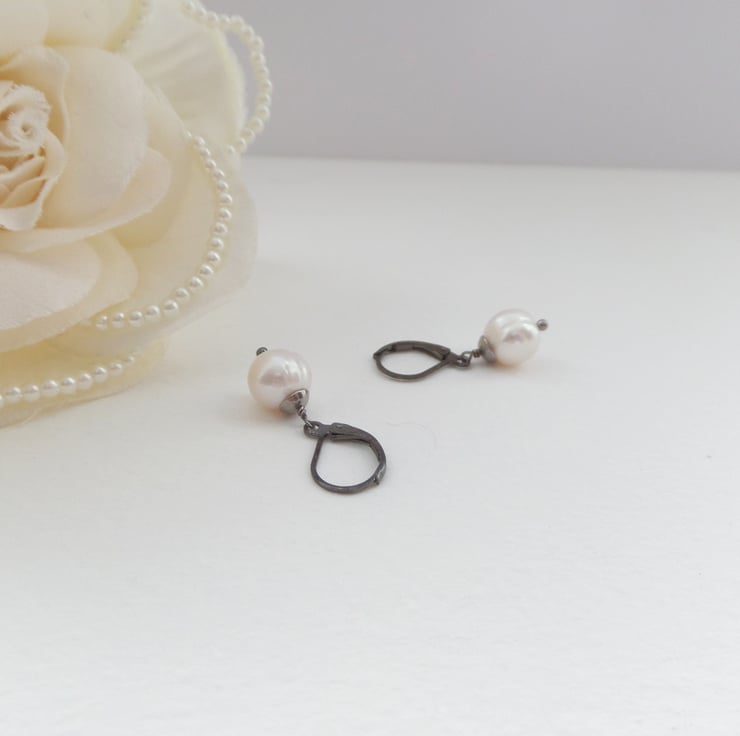 Akoya Real Pearl, Gunmetal Earrings French Fittings