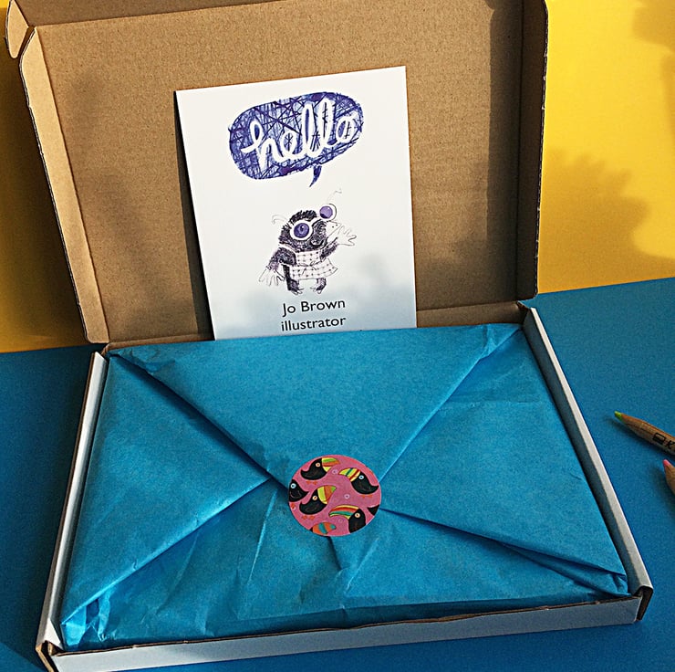Happy colourful gifts by Jo Brown, can be sent direct to recipient, with a handwritten note.
