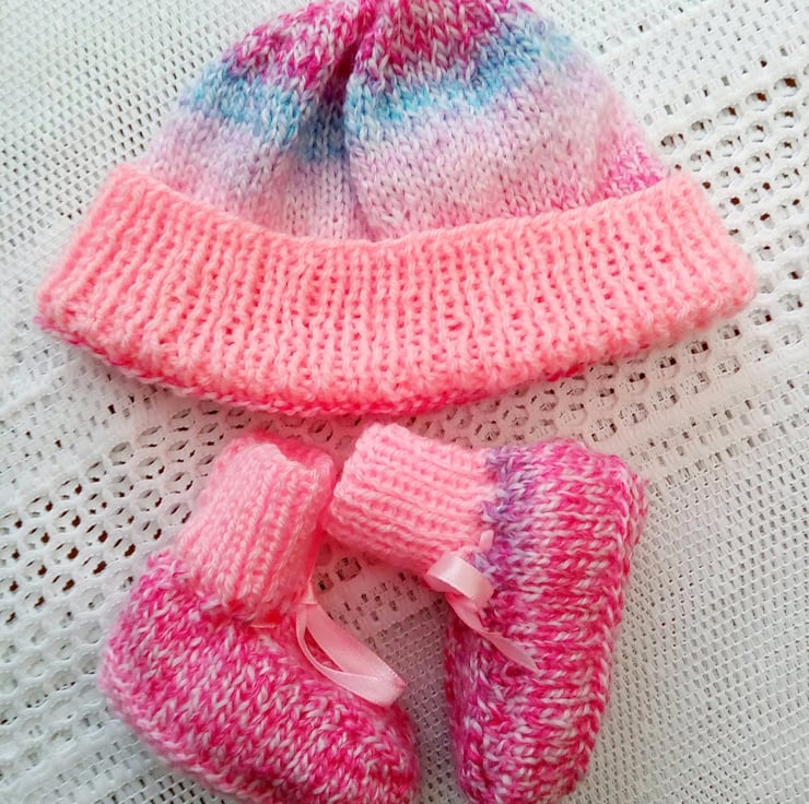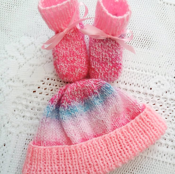 Hand Knitted Hat and Booties Set for Baby, Baby's Booties, Baby Shower Gift, New Baby Gift, Baby Clothes, Baby Outfit, Knitted Baby Clothes