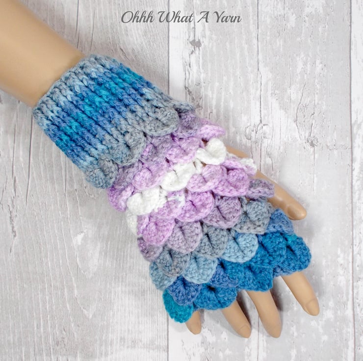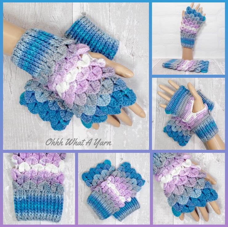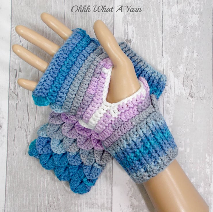 They are crocheted using the crocodile stitch on the back of the hand portion and the palm is crocheted in a flat double crochet stitch making them less bulky and better for texting and driving etc.