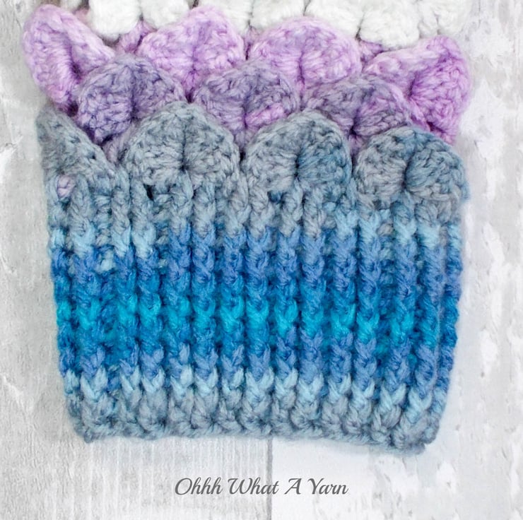 I adore all the gorgeous colour changing yarns and they are shown off perfectly with the crochet crocodile stitch.