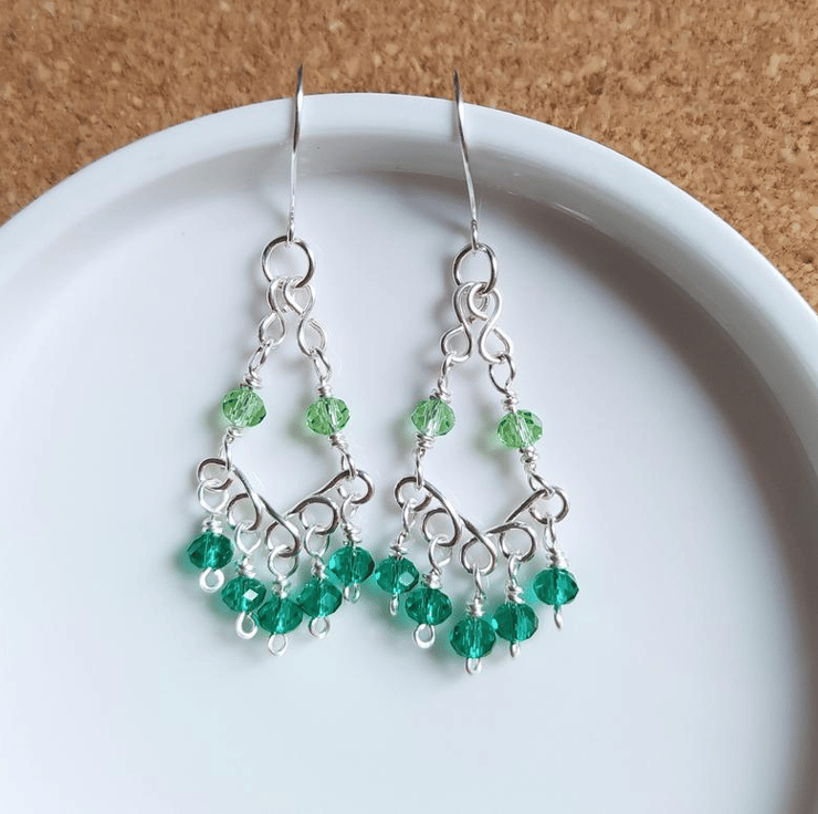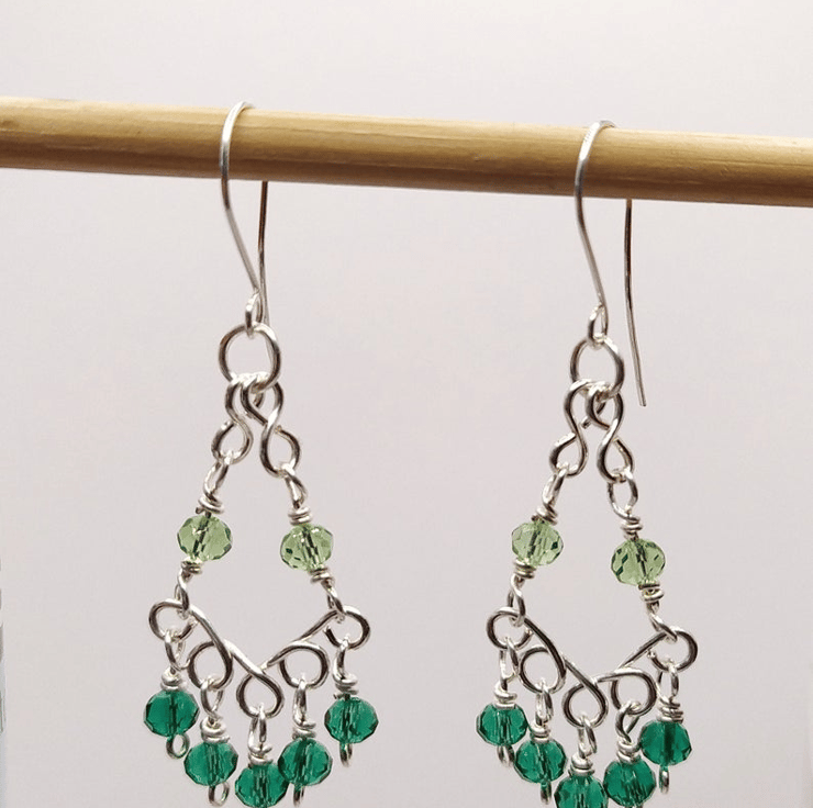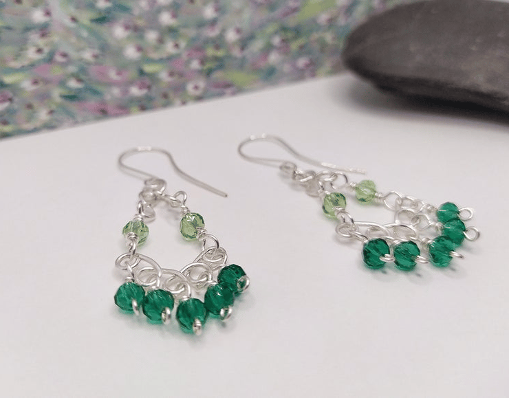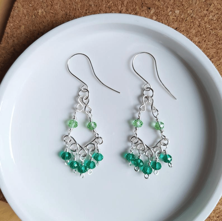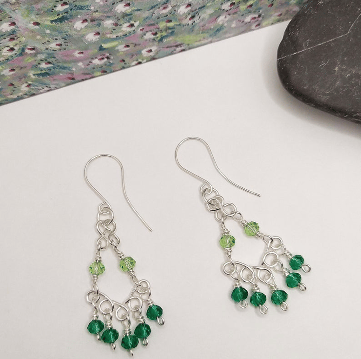 Chandelier style boho earrings, fully hand made from silver filled wire and faceted glass beads.