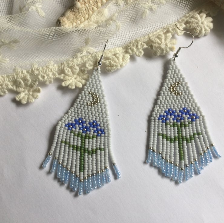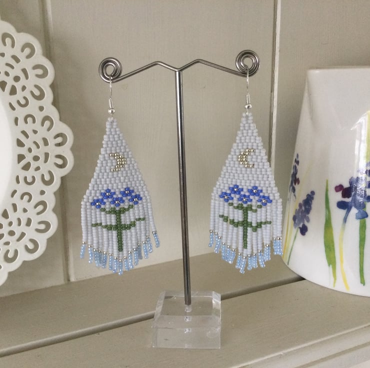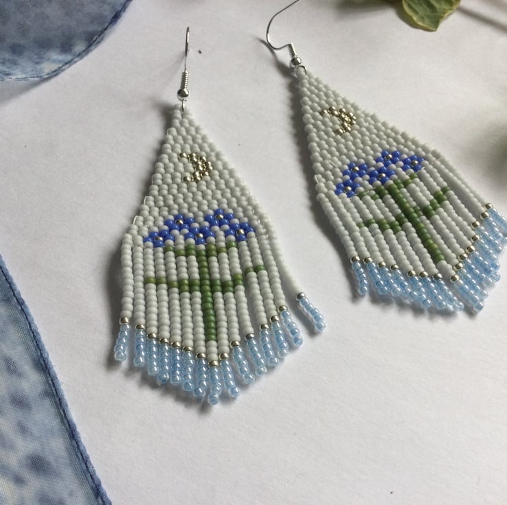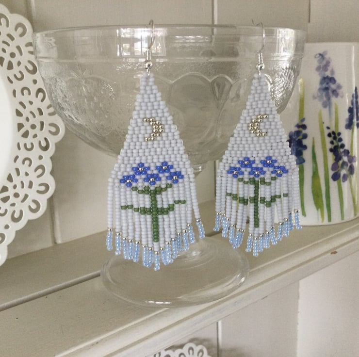 These pretty earrings are a fun and lovely accessory. Lovingly handwoven using Miyuki glass seed beads to create a beautiful flower design, inspired by the clouds of Cow Parsley that adorn our hedgerows in the Summertime.