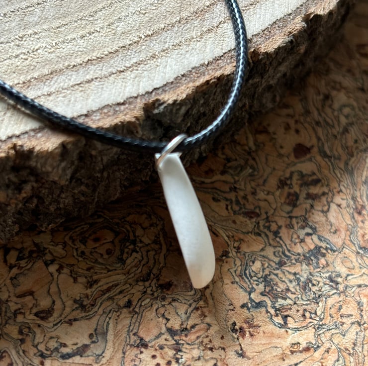 Hanging on black woven cord 44 cm, sterling silver ends and clasp.