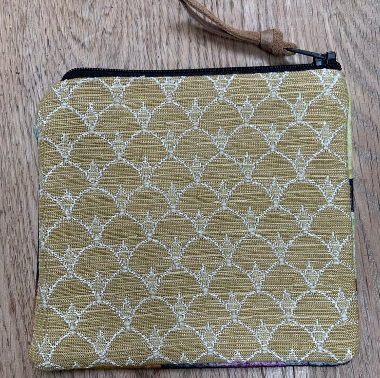 The purse measures 13 by 13cm and is big enough for coins and cards or small makeup items on a night out maybe. Fully lined in gold silk.