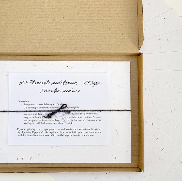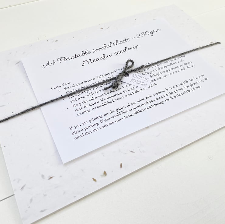 If you are wishing to print on the card, please research into whether your printer would be suitable before purchasing. It would be only be suitable for use on a rear feed inkjet printer, but please preceed with caution. The card is textured due to the seeds and they can become loose and damage the function of your printer. For this reason, I cannot be held responsible for any damage that might be caused to printers.