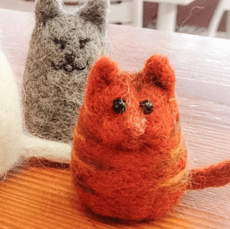 The most simple beginner's needle felt kit that contains everything you need to make two cats (choose from ginger with grey or white with soft brown)