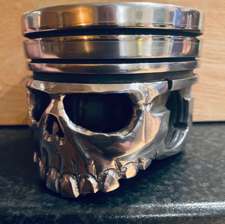 An Original used piston, hand carved and polished into a piston