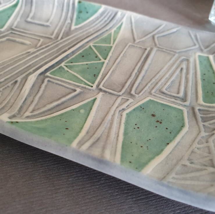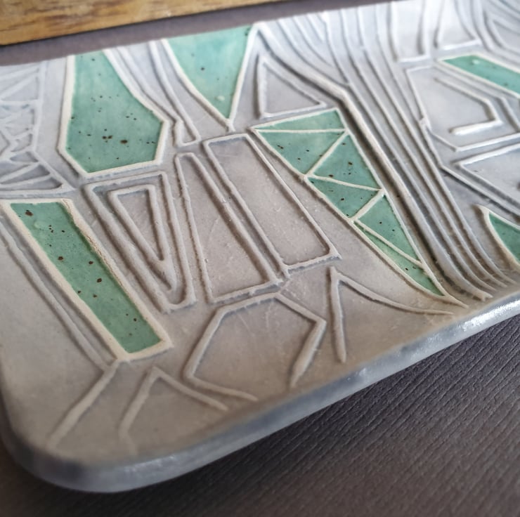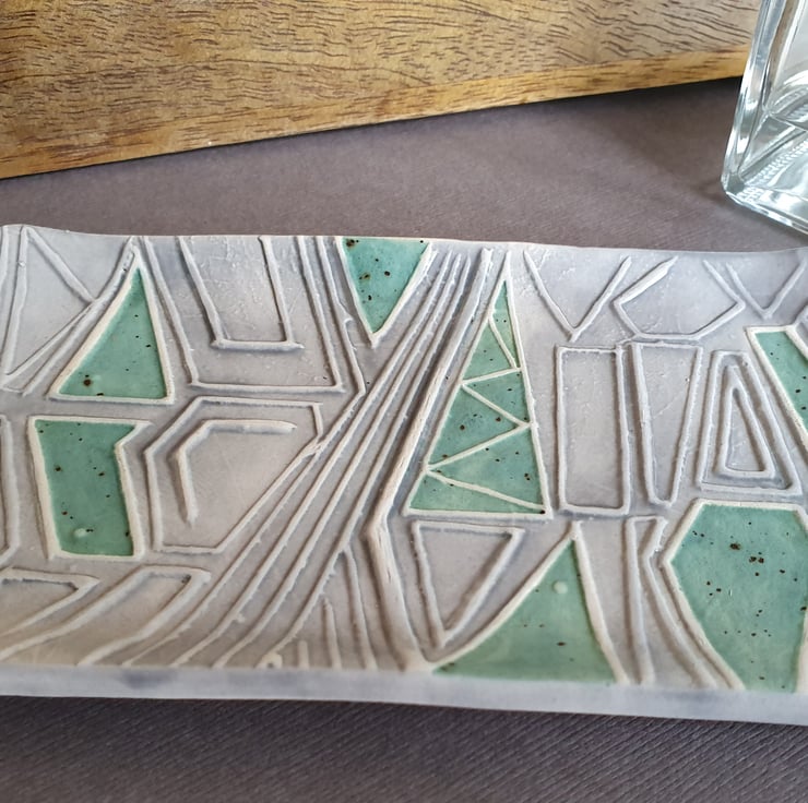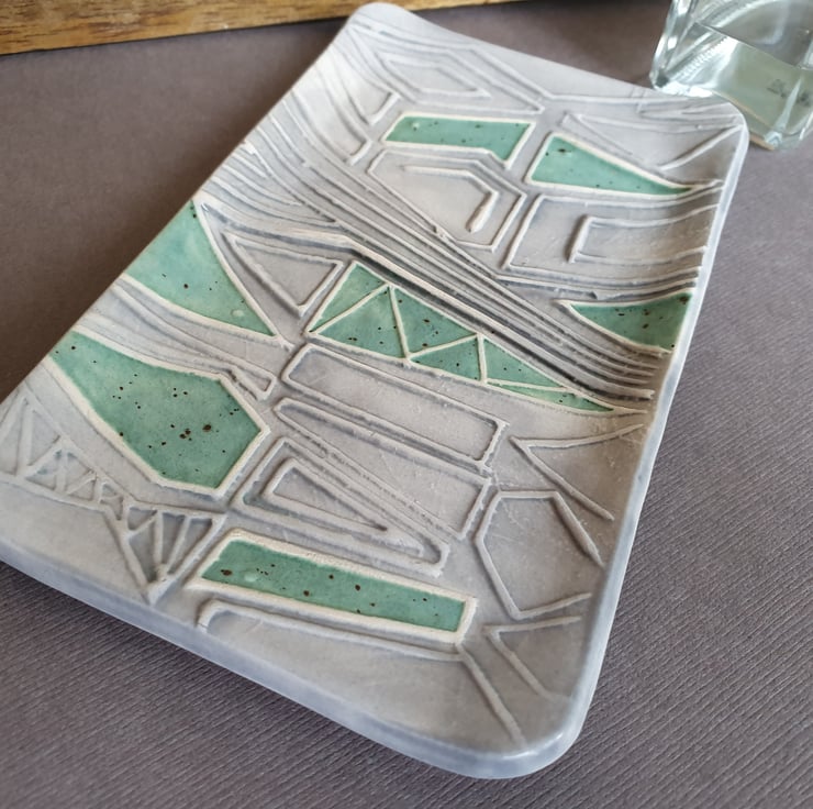 Introducing our Handmade Ceramic Trinket Tray, decorated in a unique MatildaBelle geometric design. Glazed in satin grey with green highlights, this tray combines a cool contemporary look with practical use.
