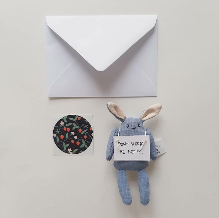 - Please note this is a sample photo of what the bunny looks like so it may vary slightly due to it being hand sewn, as well as the sticker with the envelope.