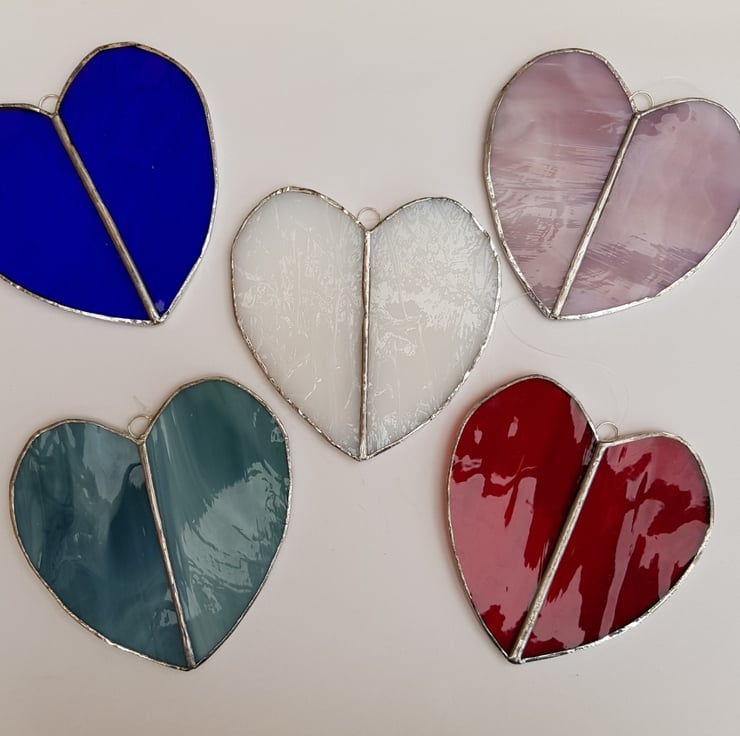 What better way to say I love you. My simple two piece large hearts are handmade using the copper foil technique.