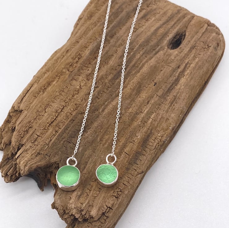 I have made the sterling silver setting by hand and hung them on sterling silver threader earrings.