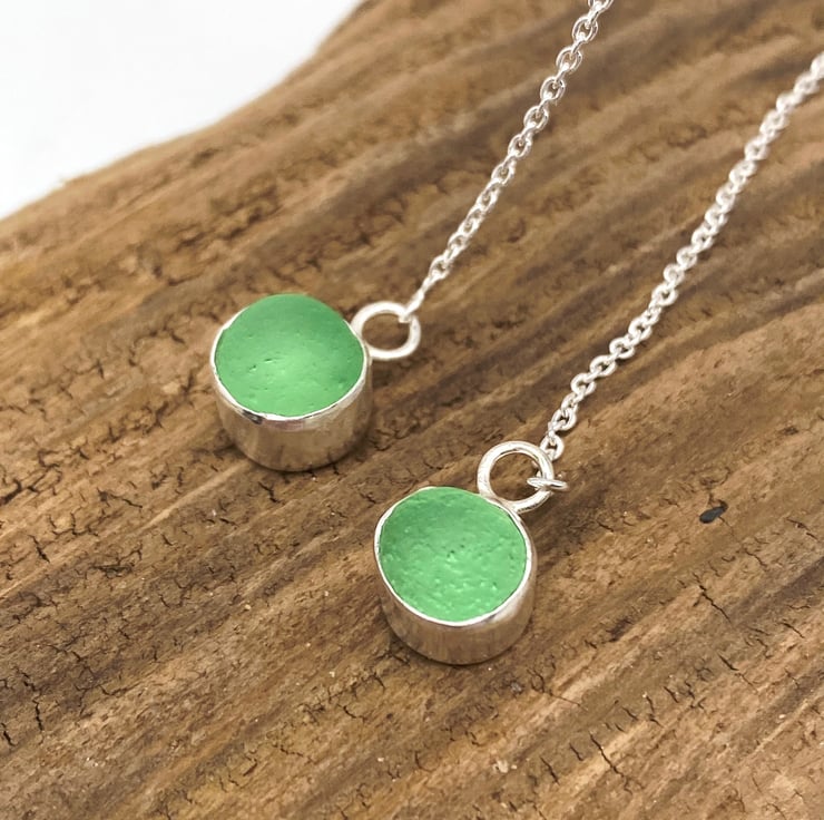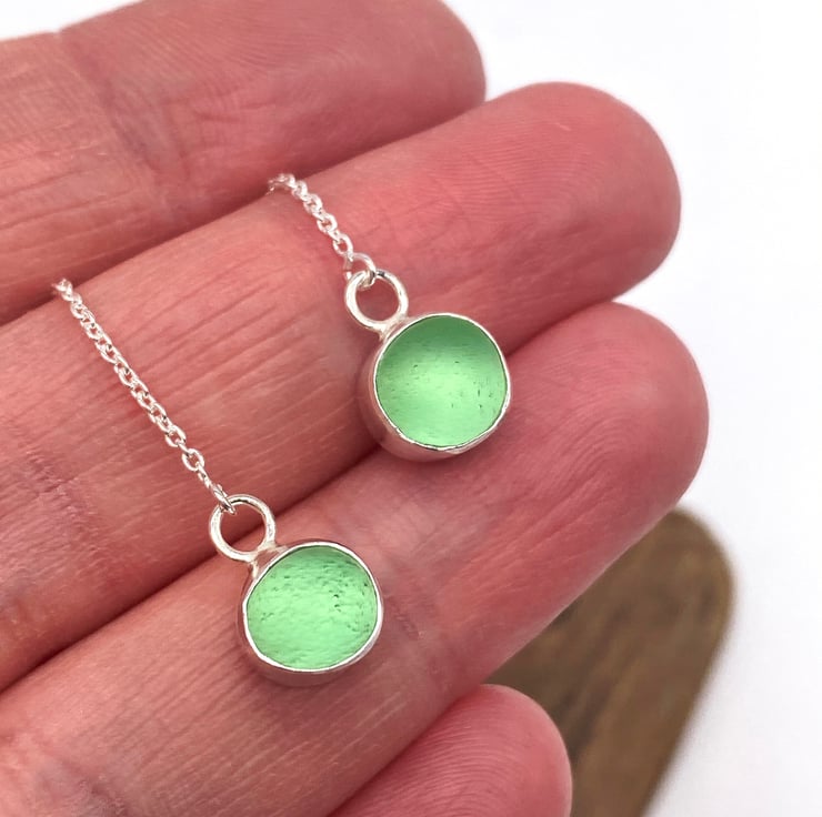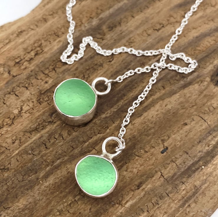 These amazing pieces of green sea glass were found on the beaches of the North of England. They really are that glowy! They have been tumbled to give them a smooth finish but you’re still able to see some pitting.