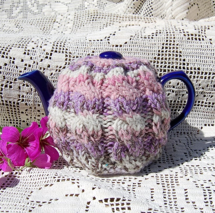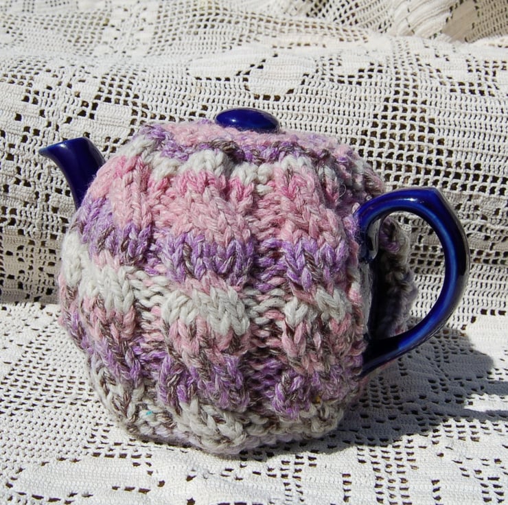 A lovely multi toned yarn has been used to create this stand out tea cosy.