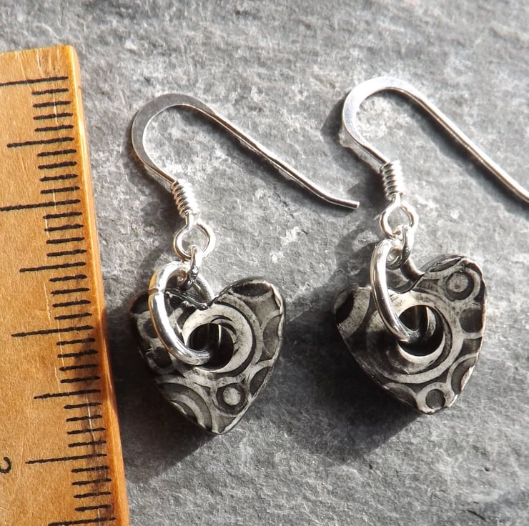 The hearts are approximately half an inch, 14mm, long, plus rings and wires.
