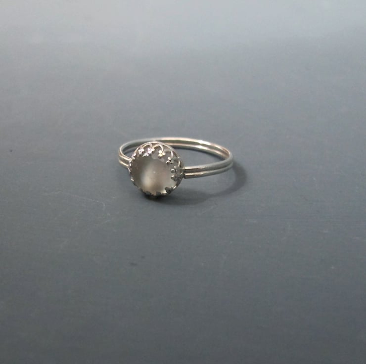 A perfect love token this beautiful white moonstone gemstone ring has a special hidden detail, a secret heart hidden underneath the gemstones setting so that only the wearer knows its there.