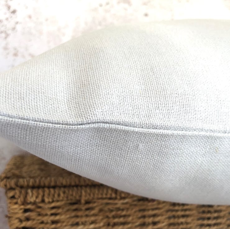 A grey linen cushion cover, made from eco friendly linen, in a beautiful Dove grey colour. The same fabric is used on both the front and back of the cushion cover.