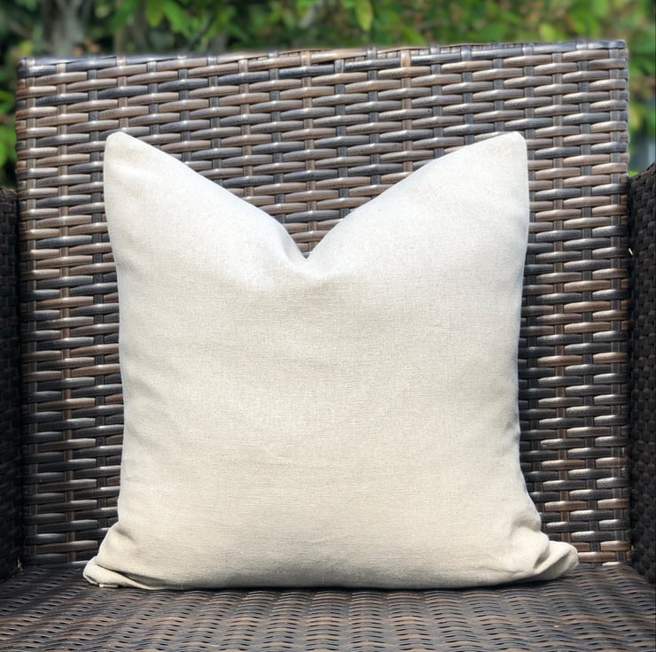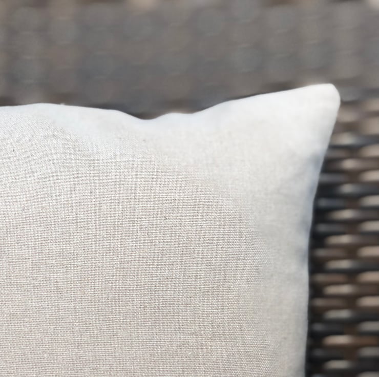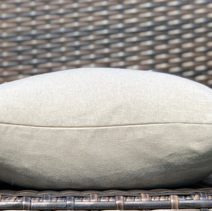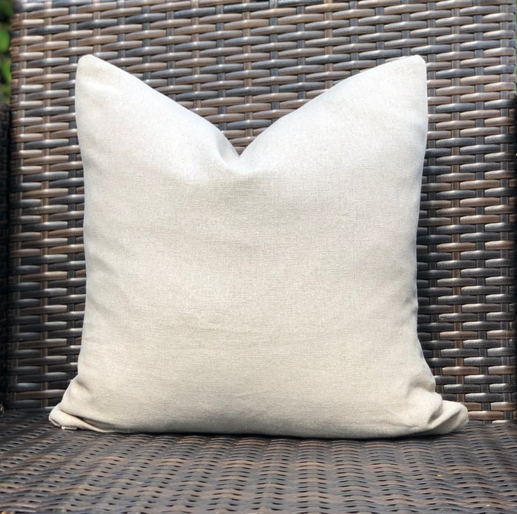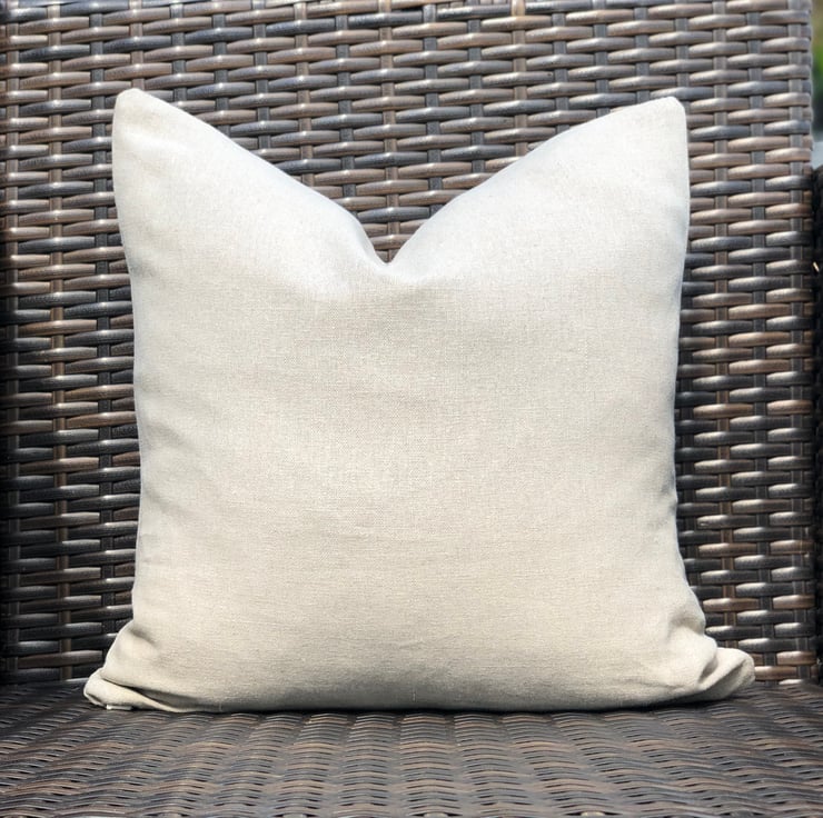 A beige linen cushion cover in a natural linen colour. It is made from an eco friendly natural linen fabric to fit an 18” x 18” (46cm x 46cm) cushion inner which is not included.