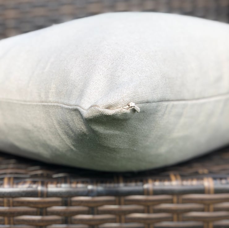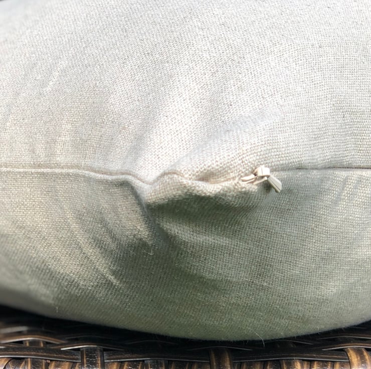 The same linen fabric is used on both the front and back. It has an invisible zip in the bottom seam for easy removal for laundering and can be washed at 30 degrees and ironed whilst still slightly damp. Please do not tumble dry.