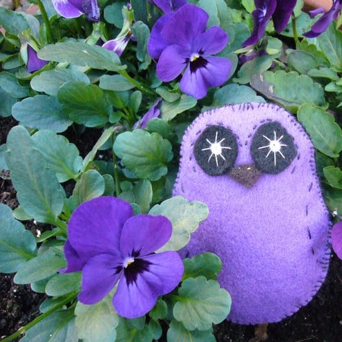 Aubergine the owl loves to go outside...but not alone...she'll sit quietly on your lapel watching where you go.