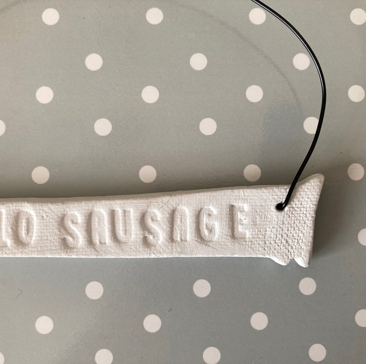 It has the wording ‘HELLO SAUSAGE’ pressed along the sausages long body to add humour to the sweet hanger.