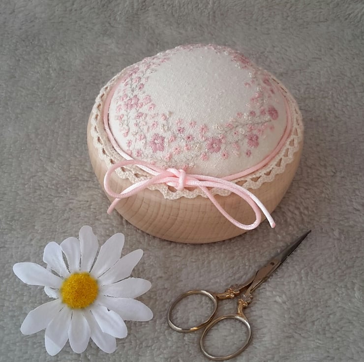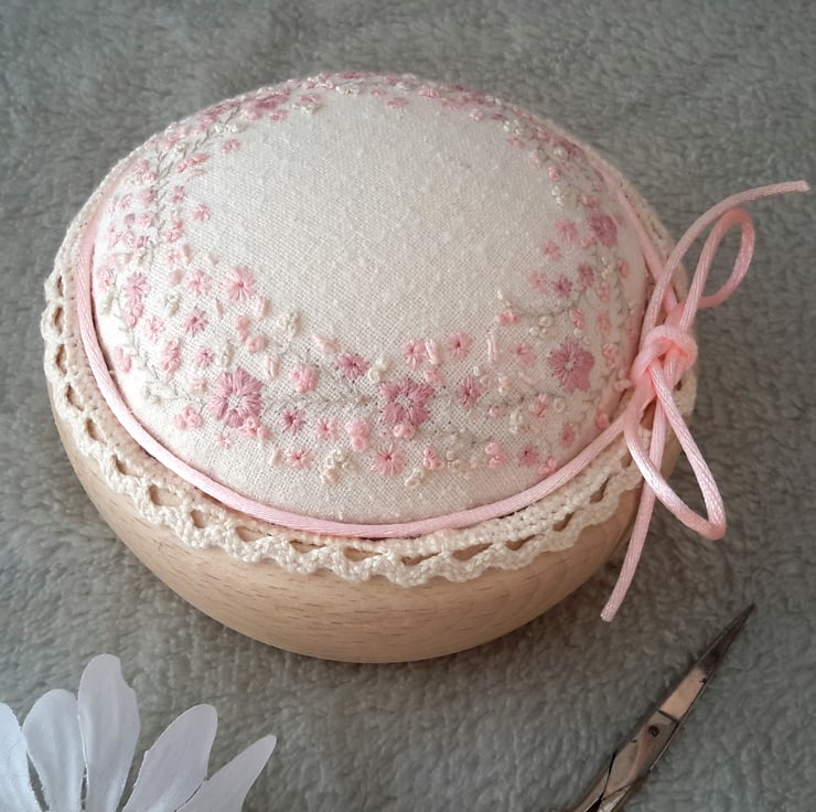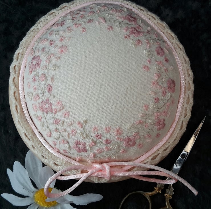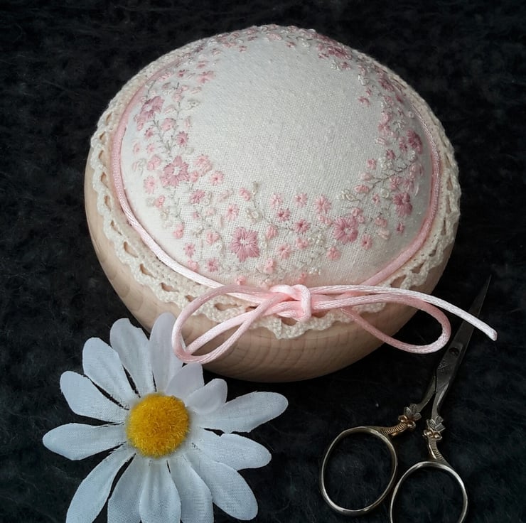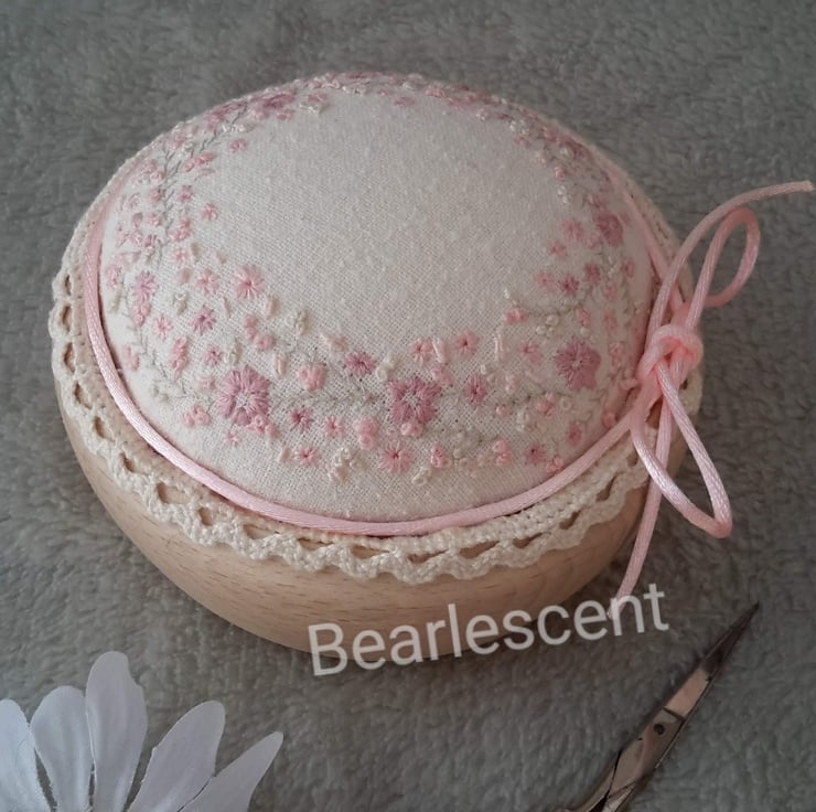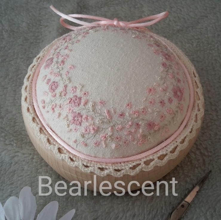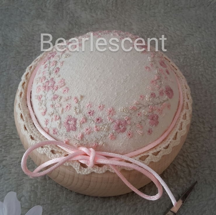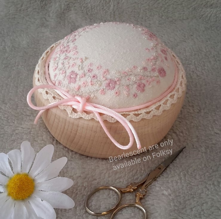 A beautiful and delicate hand embroidered pin cushion, unique design pincushion created by Bearlescent