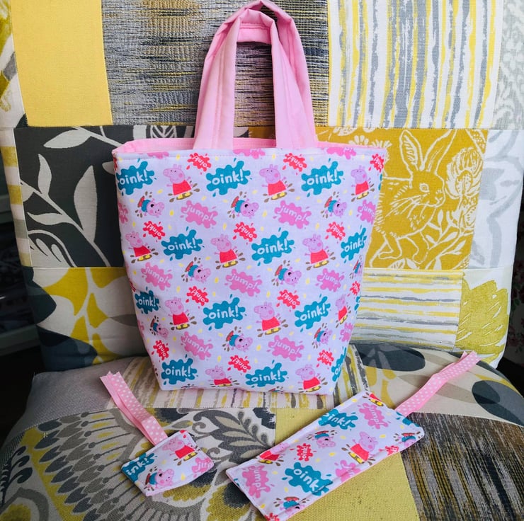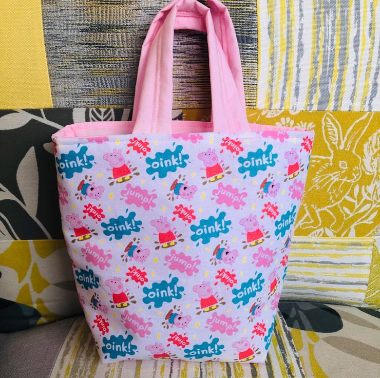 This little tote bag has been handmade by me using the gorgeous Peppa Pig fabric as shown.