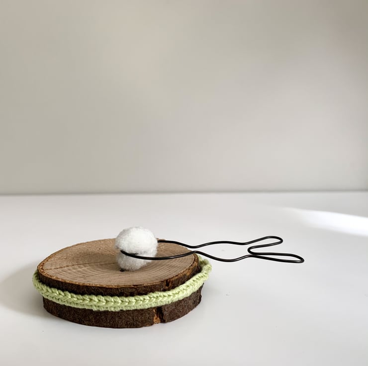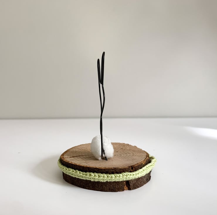 The bunny will arrive folded down in the wood slice and you simply fold up into position. I have included photo's showing this.