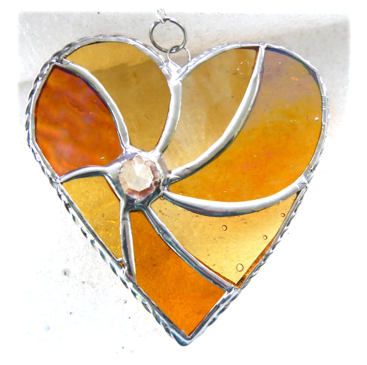 I've made the heart from 7 types and colours of glass, gorgeous golden colours and I've set them in a swirl round a sparkling crystal.