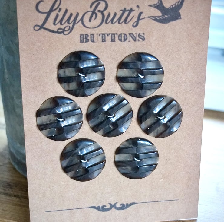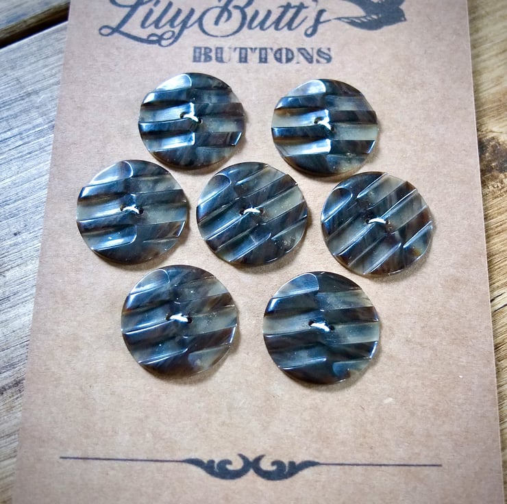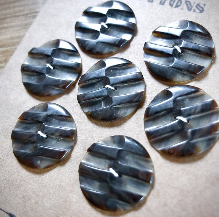 7 Gorgeous Vintage Horn Buttons, 26mm, with a wonderful alternate score pattern to them.