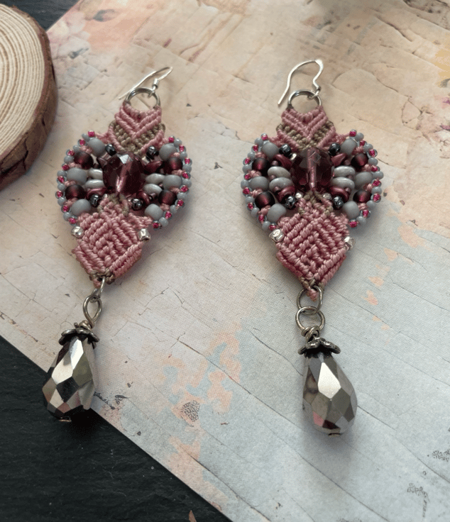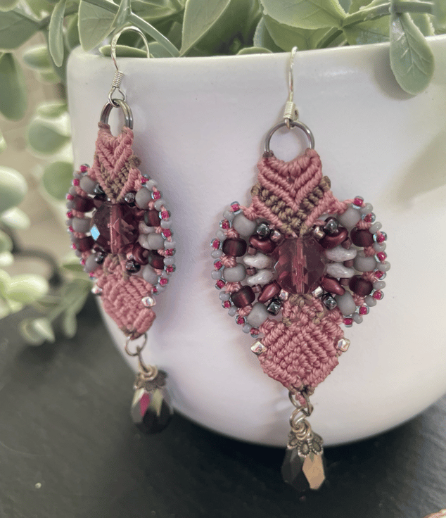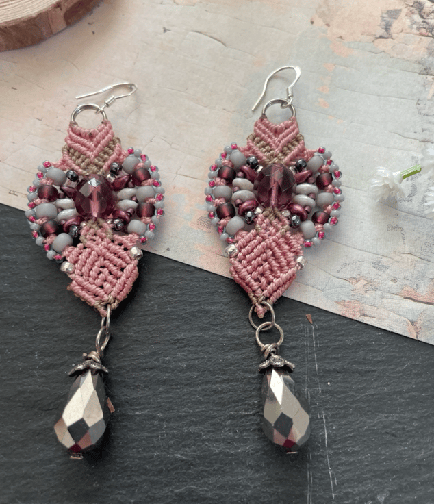These beautiful handmade beaded earrings have been hand knotted using the delicate craft of Micro Macrame. They are super light weight and yet make a big statement. Perfect for a holiday or party a real stand out unique design.
