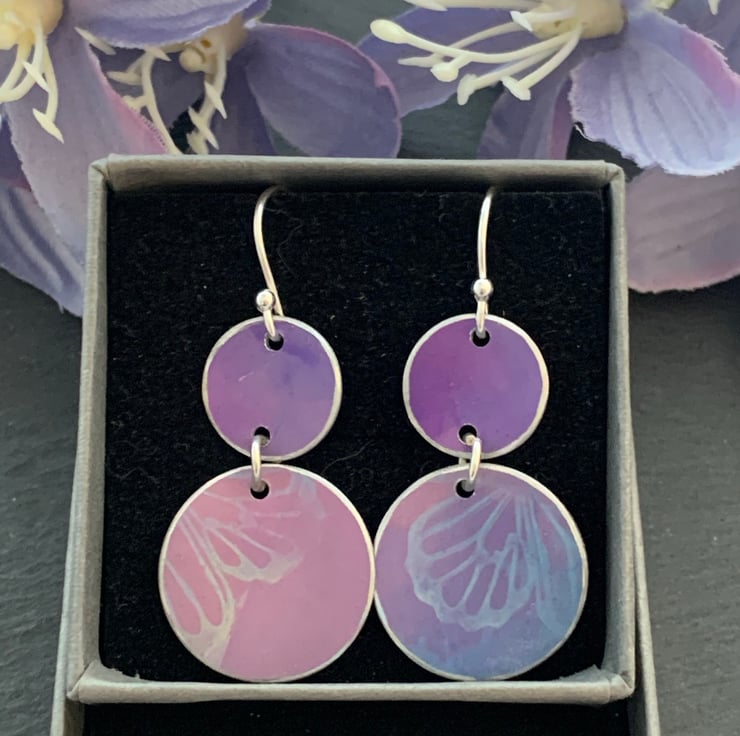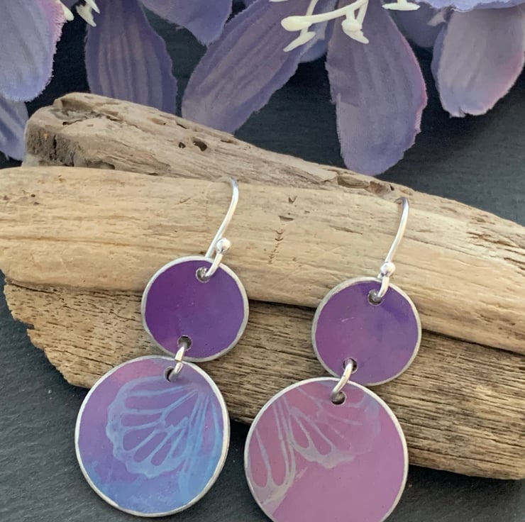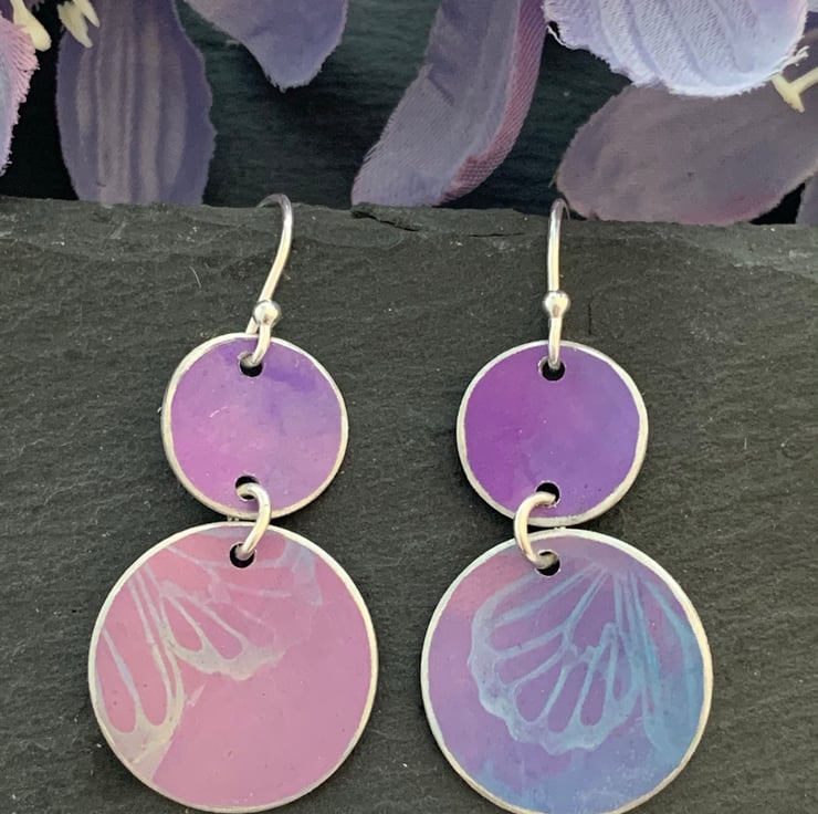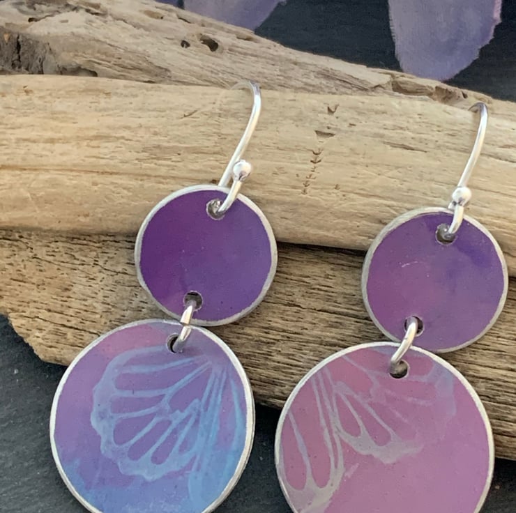 Hand painted and hand crafted Aluminium/sterling silver drop earrings.