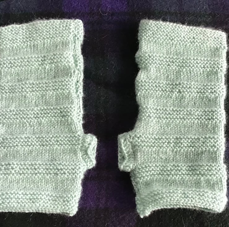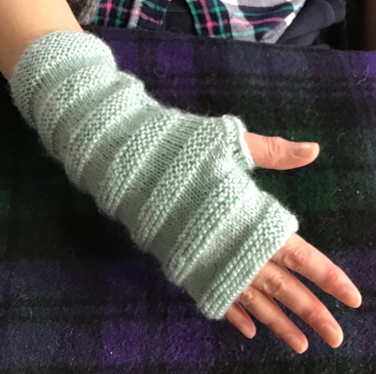 Hand Knitted Fingerless Mitts, Duck Egg