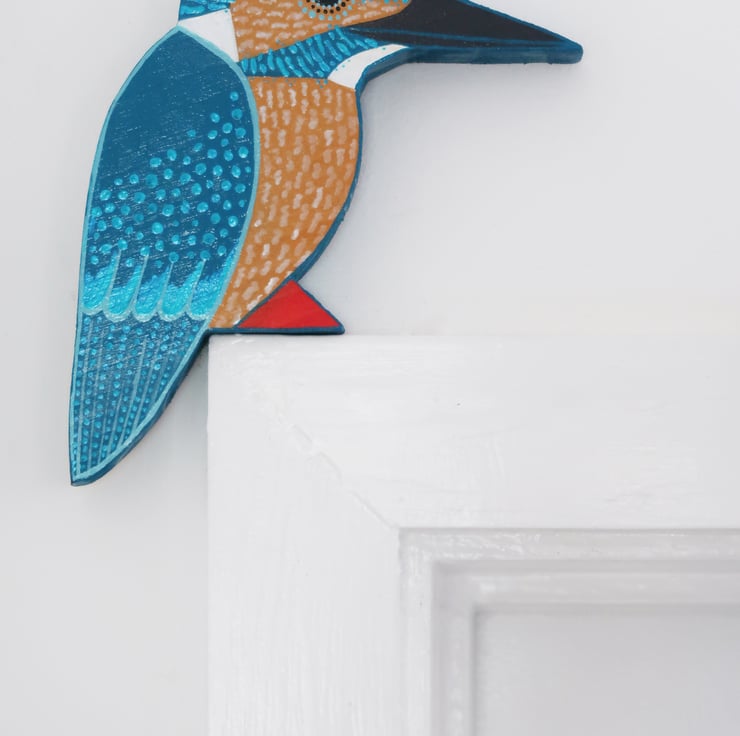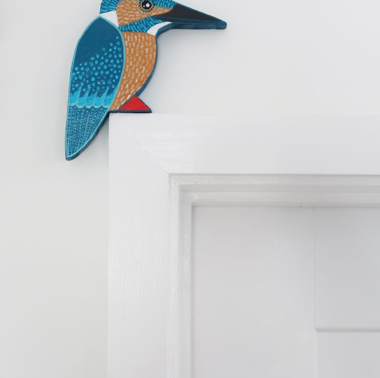You can put this wooden decor anywhere you want, but my recommendation is to use it as a shelf decor, big frames decoration (as it weights around 200 gram). Perfect as a door frame topper. Should "sit" stable on the edge, some double sided tape can be used to secure it more if the door frame is too shallow. Can be hang on a wall as well.
