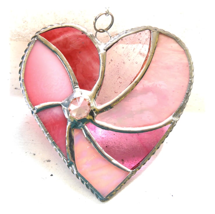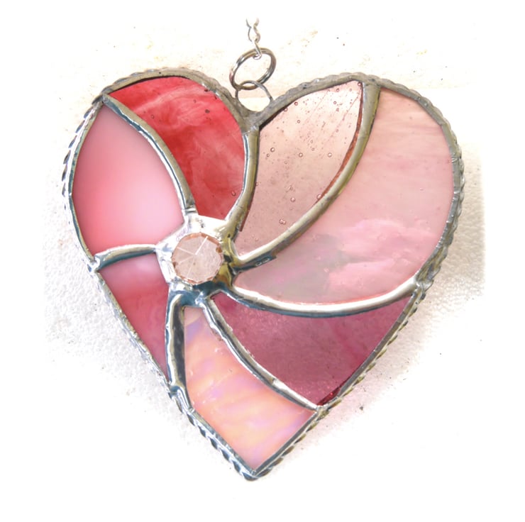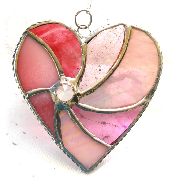 I've made the heart from 7 types and colours of glass, gorgeous pink, textures and iridescence and I've set them in a swirl round a sparkling crystal.