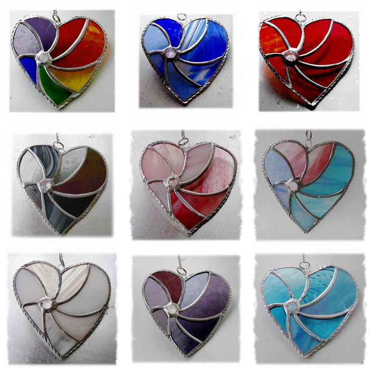 The 4th photo shows this heart with 5 other colour options. The 5th all 9 colour options in stock at the time of listing this one and all for sale as separate listings.