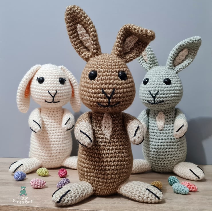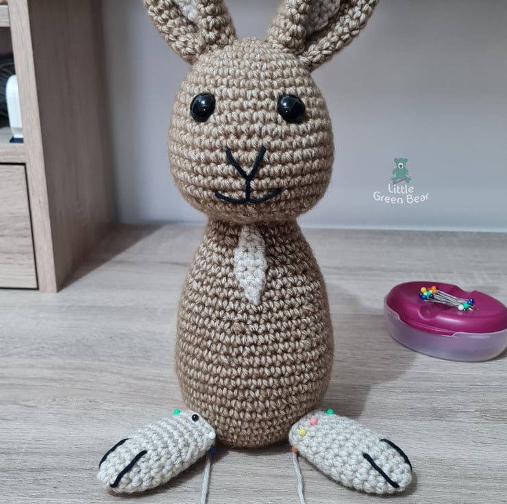 Rodney spends his days searching the fields for tasty crops and patches of lush grass - he gets very excited if he finds a dandelion! Rainy days he spends indoors, exploring the warren underneath, visiting his 8004 brothers and sisters in their burrows along the way. He sits 11.5 inches tall (when made with the recommended materials).