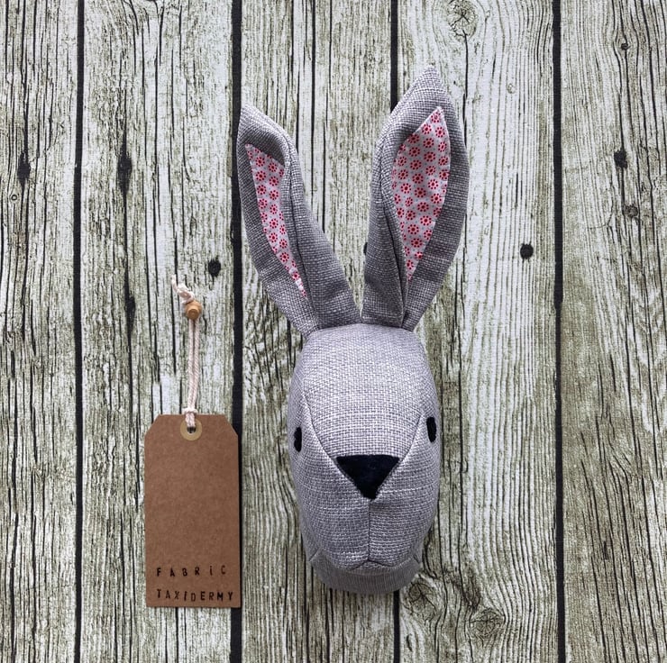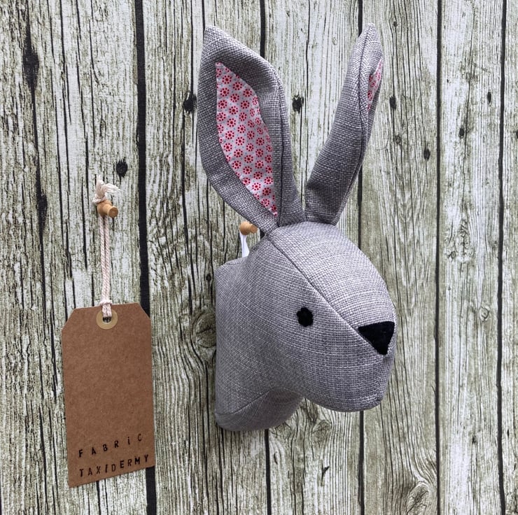 Wall mounted Rabbit head - Grey with patterned ears.