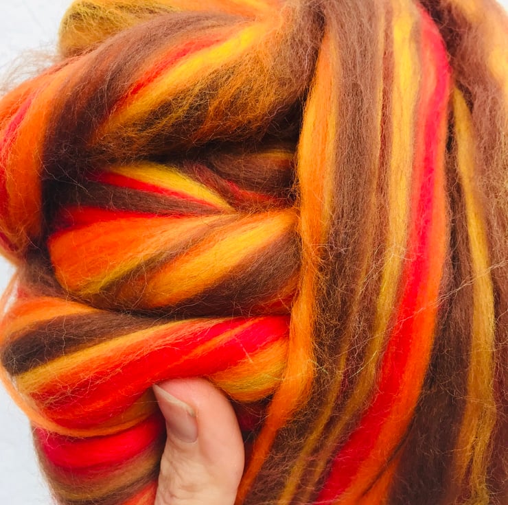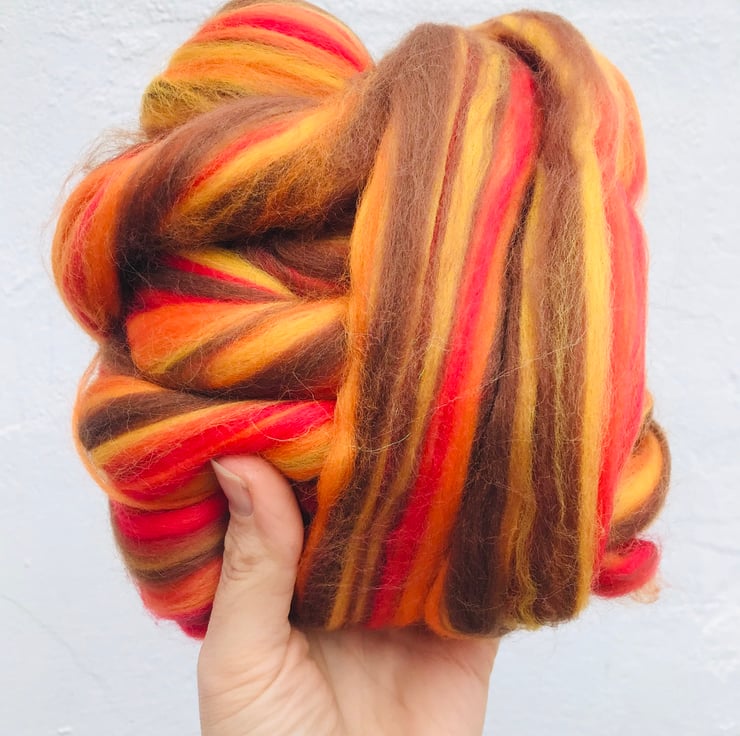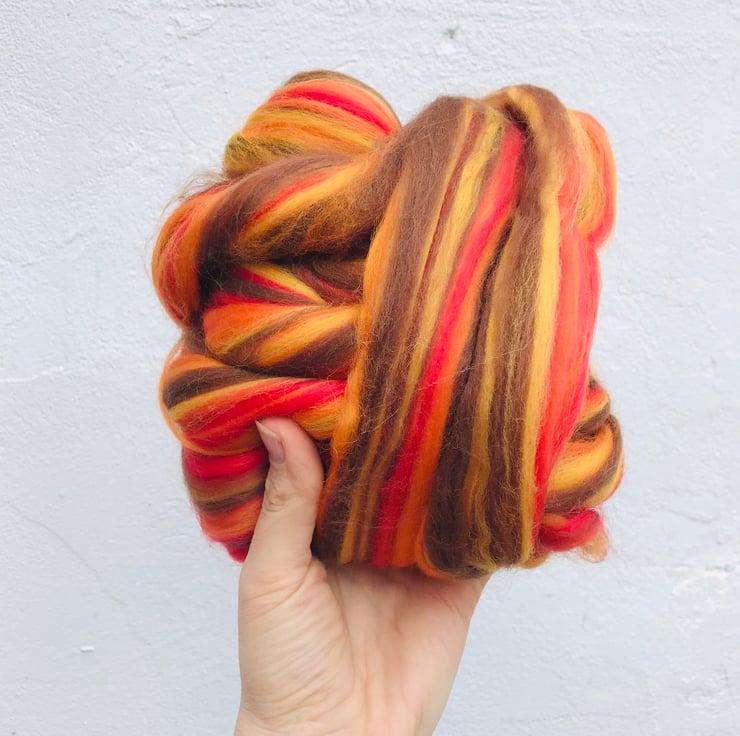 Stunning orange wool blend for feltmakers and spinners. Can be used for wet Felting and needle felting. Gorgeous stripes in the merino wool blend.