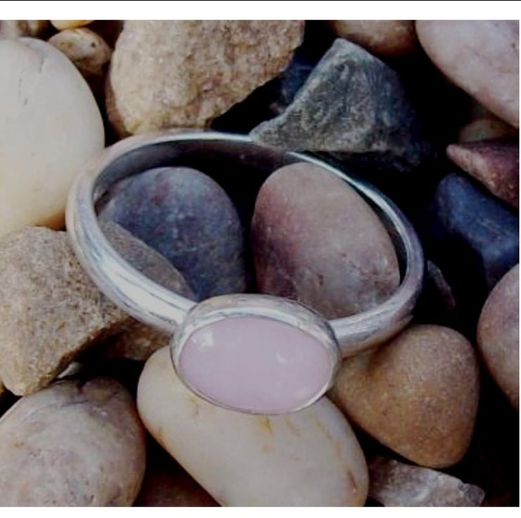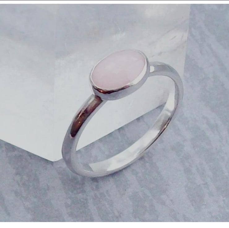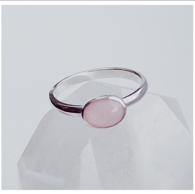 Handmade Sterling Silver Ring set with an 8 x 6 mm Pink Mother of Pearl Cabochon