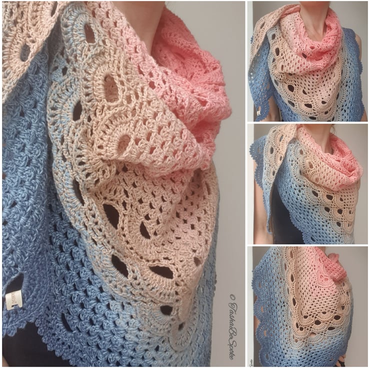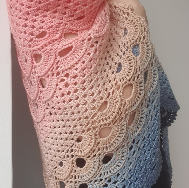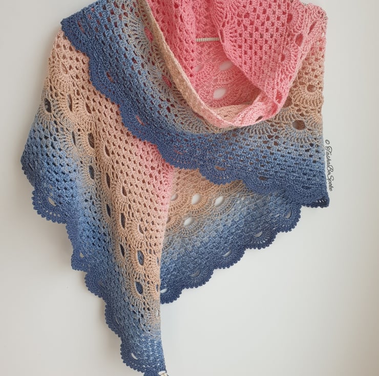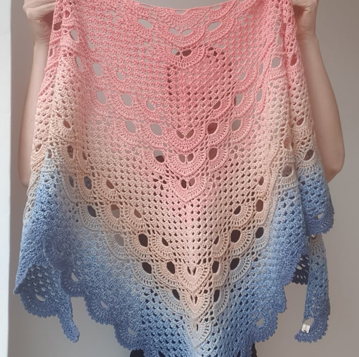 Care: hand wash in warm water with a mild detergent suitable for delicate garments, rinse. No twisting or wringing of the shawl. Roll it in a towel and let the towel absorb water. Spread the shawl flat to dry.