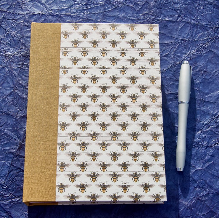 A5 hardback page-a-day journal with bound spine and decorative bee cover.