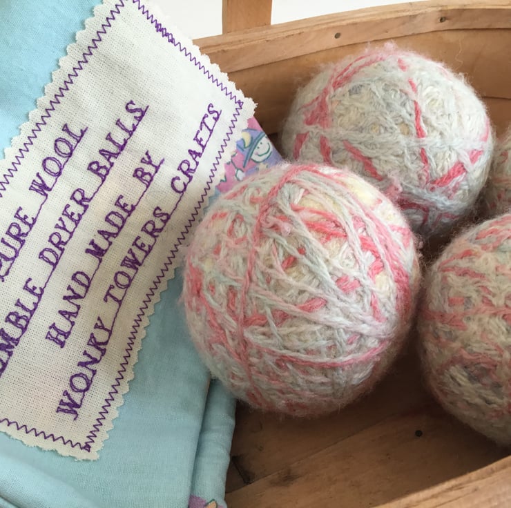 Balls may vary a little in size but are generally about tennis-ball-sized and weigh about 50g. They are great for speeding up the drying process by separating items of laundry, allowing a better flow of warm air. They also smooth out creases, soften towels and can reduce static. Being made from pure wool means that the dryer balls reduce your use of plastics or non-recyclable dryer sheets and as the wool absorbs water from your laundry, drying is more effective. Wool balls can be used over and over again and will not release any toxic chemicals into your dryer. When they reach the end of their useful life you can pop them in your compost bin. This won’t be for a long time. I’ve had mine for well over 2 years and they’re as good as new!