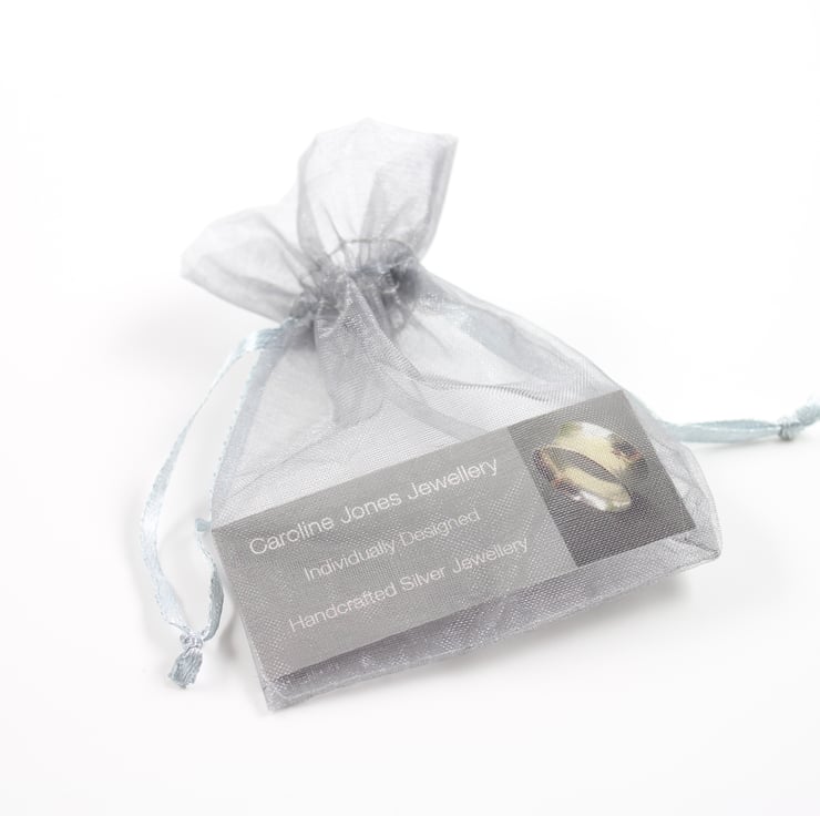 Packaging: All my packaging is recycled or recyclable and your jewellery will be wrapped in tissue in a silver organza gift bag and sent in a letterbox slim cardboard box.