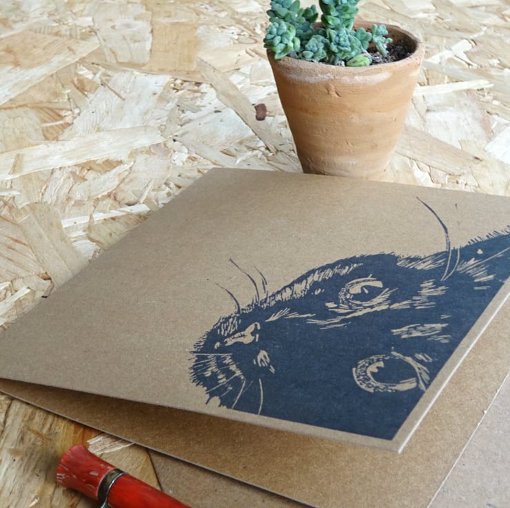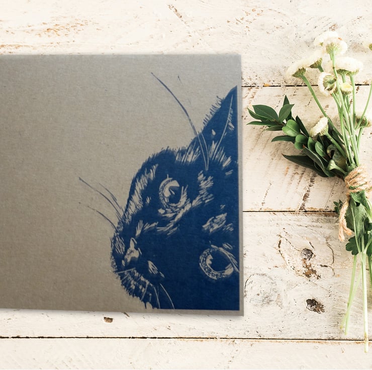 Simple but stylish greeting card with a cute black cat giclee printed onto recycled card.