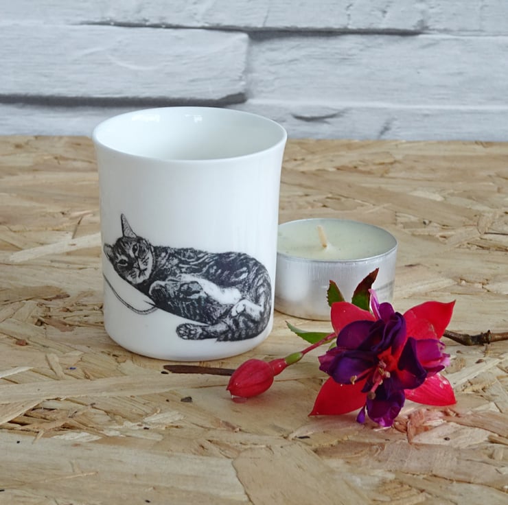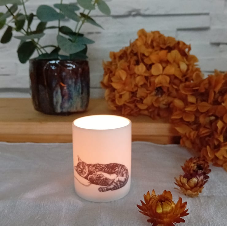 Illuminate your space with the charm of our White Ceramic Tealight Holder, adorned with an endearing tabby cat design. Crafted from high-quality ceramic, this tealight holder features intricate detailing of a playful tabby cat, bringing a touch of whimsy and warmth to any room. The smooth white finish complements any decor style, making it a versatile addition to your home. Perfect for cozy evenings or as a delightful gift for cat lovers, this tealight holder creates a serene ambiance with the gentle flicker of candlelight. Elevate your decor with this charming and functional piece.